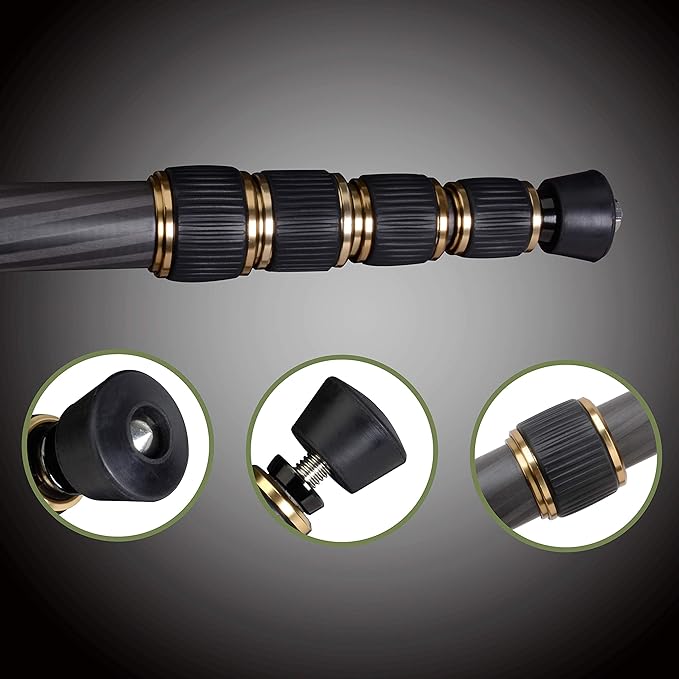 - Build-in bubble level indicator, three adajustment knobs design pan, It has a carring case, easy to carry. 5-section tripod legs, realizing your lowest angle shooting
