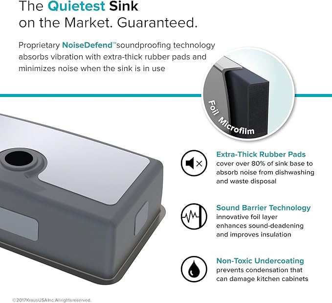 - A QUIET KITCHEN SINK: Superior NoiseDefend soundproofing technology helps prevent noise and vibration when the sink is in use