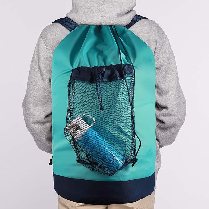 Dalykate Laundry Backpack with Shoulder Straps and Mesh Pocket Durable Nylon Clothes Hamper Bag with Drawstring Closure for College, Travel, Laundromat, Apartment