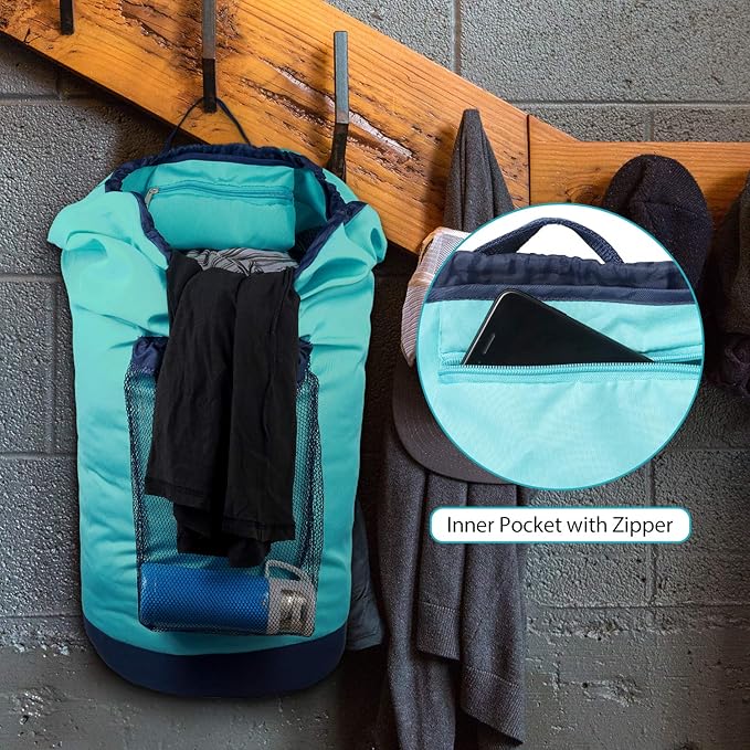 - USE AS HANGING HAMPER - Hang this laundry backpack on the wall or door as hanging laundry hamper with the reinforced hanging loop on the bag to collect dirty laundry. Suitable for college, camping and home.