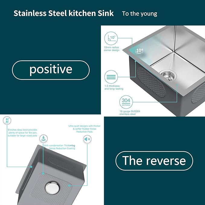 - Durable 304 Stainless Steel: This heavy-duty 304 stainless steel kitchen sink is rustproof, scratch-resistant, and designed for long-lasting daily use. The surface maintains its sheen even after years of cleaning and cooking