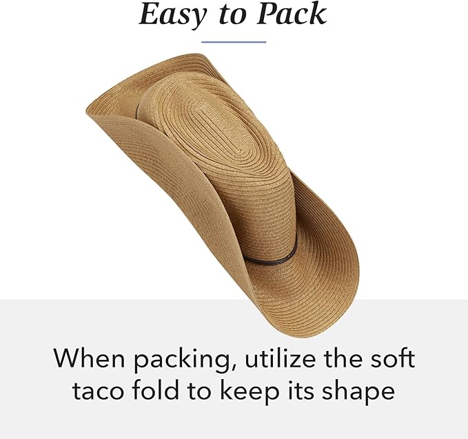 - TRAVEL-FRIENDLY: Designed for the sophisticated traveler, the Montecito Fedora is the perfect companion for all your adventures. This packable sun hat can be folded using the soft taco fold method by gently bringing the sides together. Surround the brim with clothing to prevent creases, and for added protection, fill the crown with small items like socks or underwear to maintain its shape. Whether stashed in your beach bag or tucked into your suitcase, this hat travels with ease.