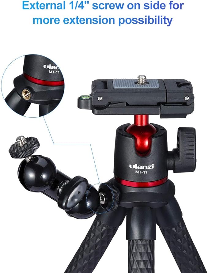 - 1/4 Thread for Extension: The camera flexible tripod has a 1/4‘ thread, allows you to mount a minotor magic arm(not included)