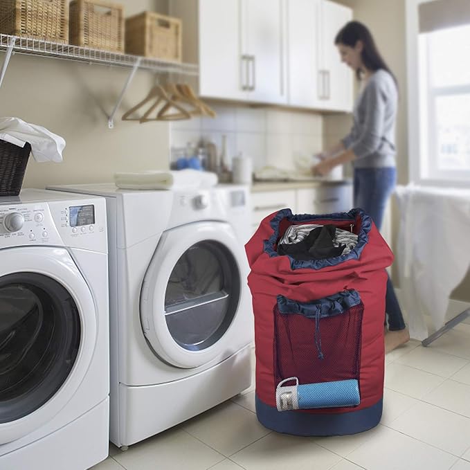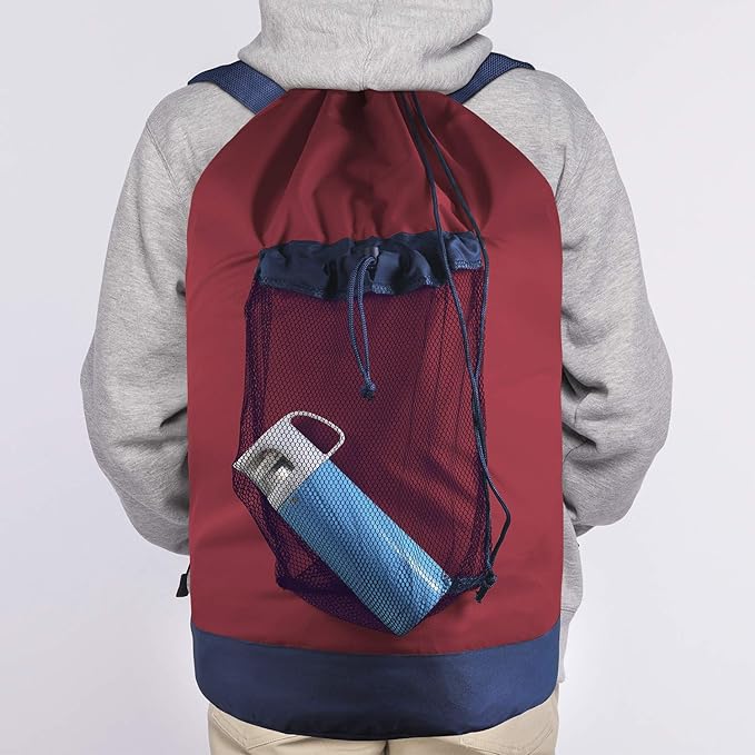Dalykate Backpack Laundry Bag, Laundry Backpack with Shoulder Straps and Mesh Pocket Durable Nylon Clothes Hamper Bag with Drawstring Closure Red