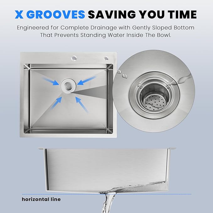 POPFLY 25×22 Inch Drop in Kitchen Sink, Top mount Stainless Steel Single Bowl Sink, 18 Gauge Hand-made Overmount 9 Inch Deep Sink, Brushed