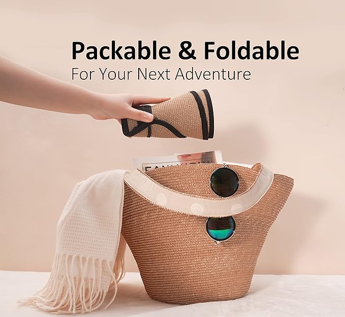 - 【Roll up & Easy to Carry】The packable and foldable sun hat comes in a dust bag being rolled up by rubber band, which you can always keep it in that incredibly convenient way. Just store it in your tote bag on the go!