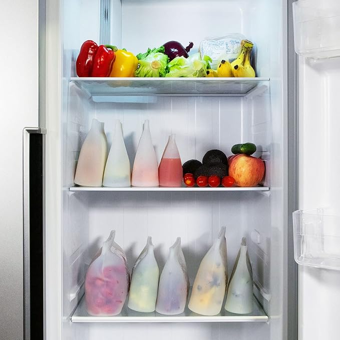 - SUPERIORITY: Winrock bags are soft and elastic , they are zip lock seal, don’t need any lids to keep food fresh, and the bags can stand up and easy for keep soup or juices in it. Just burp the bags to remove excess air and pinch the seal closed. They are Small figure but large capacity, Save more space on your refrigerators.