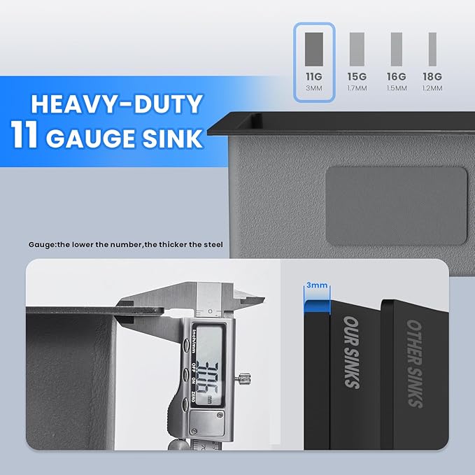 - 【Noise Cessation & Moisture Barrier】Use 3mm sound guard undercoating and thick rubber padding, covering more than 90% of the sink area,reducing the sound of running water and absorb sound from the source, Ultra quiet designs. Anti-condensation Coating, isolate condensate.