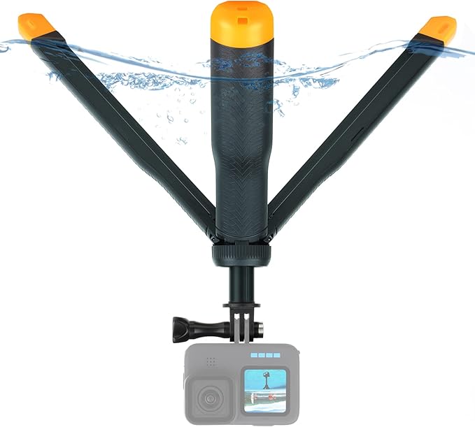 - Floating Selfie Stick Tripod: When folded, it can be used as a floating handle, and when the three legs are unfolded, it can be used as an inverted floating tripod in the water to minimize the effects of water shaking and help you take more stable videos and photos without holding the tripod. Ideal for surfing, snorkeling, sea diving, wakeboarding and other water activities
