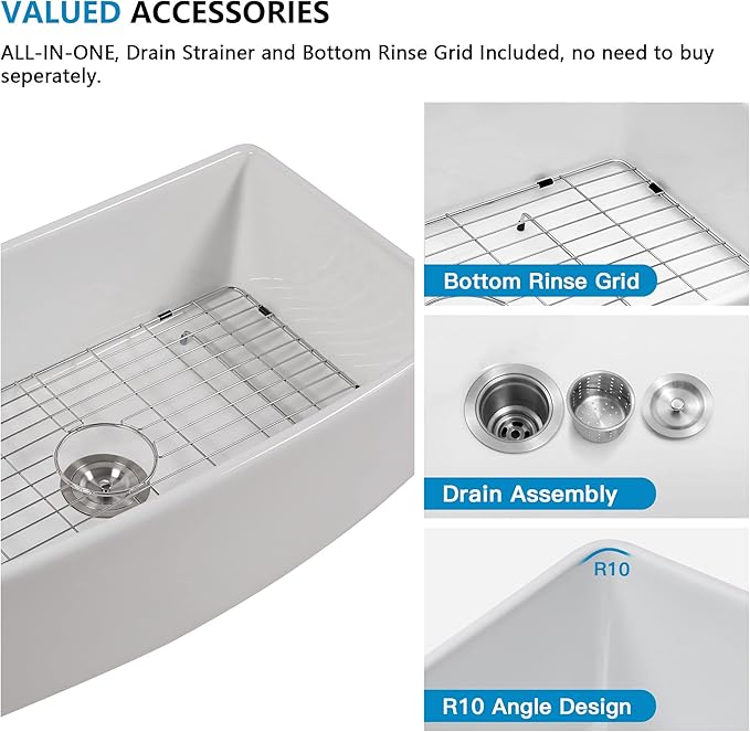 - Fulorni Service - The white farmhouse sink is packaged in a custom impact resistant foam box for maximum protection during transit, ensures that you receive it in undamaged condition, pls order with confidence. If any concerns or questions about the 33 fireclay farm sink, please get in touch with us, our customer care team is always ready to help you.