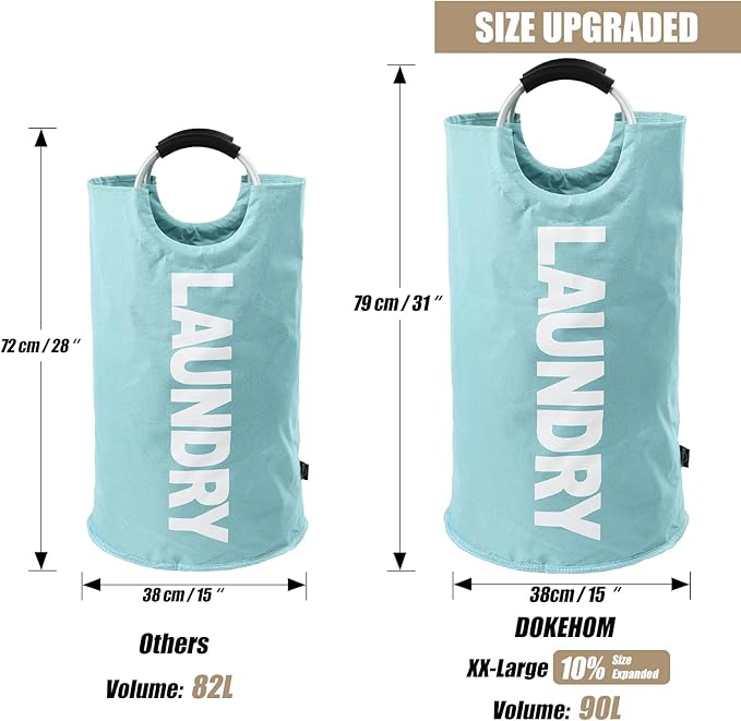 DOKEHOM 90L Large Laundry Basket, Collapsible Laundry Bag, Freestanding Tall Clothes Hamper, Foldable Washing Bin (Light Blue)