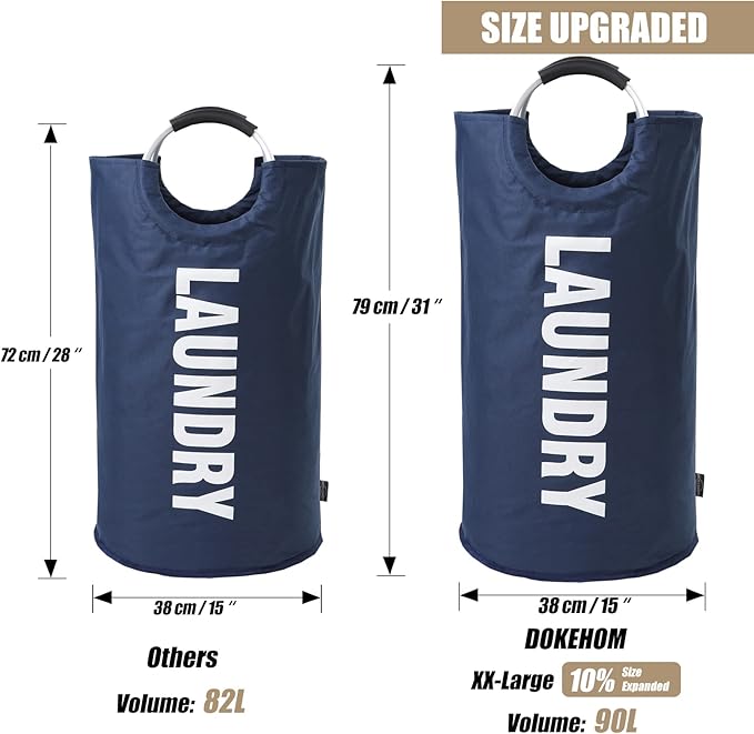 DOKEHOM 90L Large Laundry Basket, Collapsible Laundry Bag, Freestanding Tall Clothes Hamper, Foldable Washing Bin (Dark Blue)