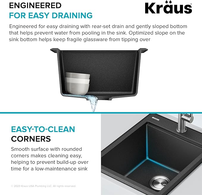 - EASY-TO-CLEAN: Ultrafine, smooth, non-porous material helps prevent food and liquid from sticking to kitchen sink surface, easily wipes clean – HEAT SAFE up to 500°F – Color-stable material with VIVID COLOR that resists fading and discoloration over time