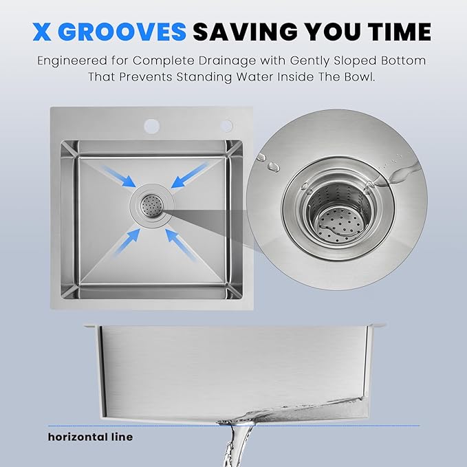 - 【Superior Drainage+Easy Clean】SUPERIOR DRAINAGE-Bottom slope and channel groove X water guideline for fast drainage.R10 radius corners sink rounded or easy cleaning up