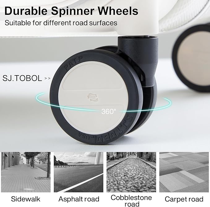 - 【CREATIVE FRONT OPENING】The trunk luggage with spinner wheels Leading the future opening and closing method which is effortless to open or close the suitcase, not only is it easy to load, but it also saves space. This design solves the problem that traditional luggage separated 2 compartments of heavy load then it's difficult to open and close. Importantly, it also avoid the displacement of items.