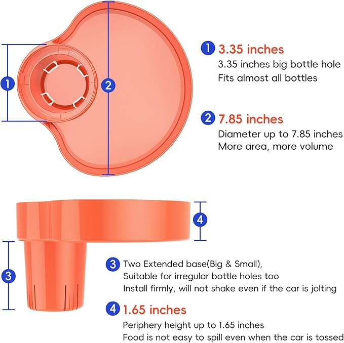 - [Big volume] The car seat food tray diameter up to 7.85 inches,big volume can store more food and snack.(Orange)
