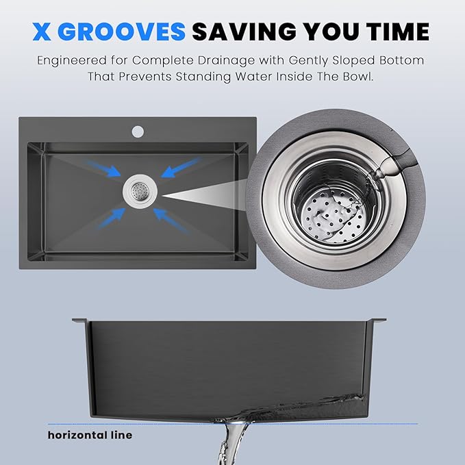 - 【Fast Drainage】The X groove is designed for easy drainage, the a slight dip at the bottom to prevent water accumulation. while 4 drain grooves on the sloped bottom of the sink help direct water to the drain