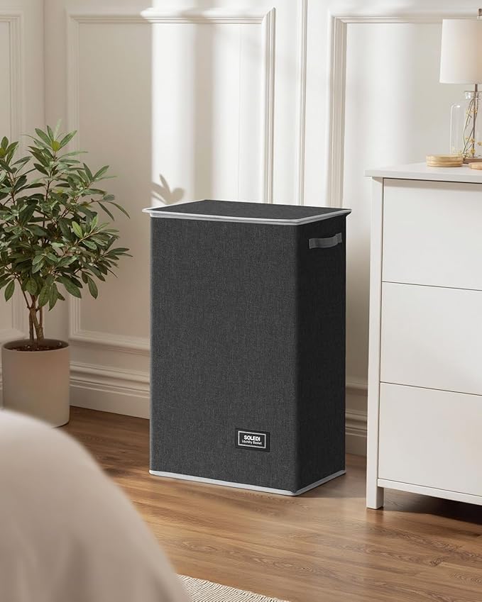 SOLEDI Laundry Hamper with Lid 90L Large & Tall Collapsible Laundry Basket, Clothes Hamper with Bag Removable Easy to Carry, Dirty Hampers for Bedroom, Bathroom, Dorm, College, Dark Grey