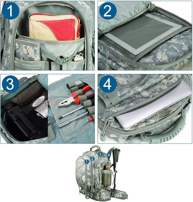 Large Tactical Backpack for Men Military Backpack with DIY System for Travel, Work,Camping,Hunting,Hiking,Sports (Camo A)