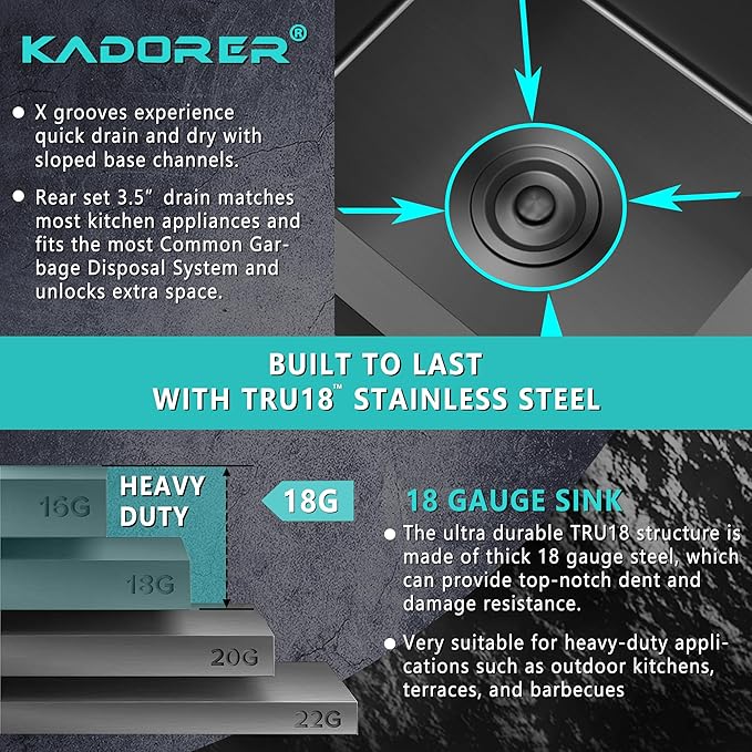 - PREMIUM MATERIAL: This Single Bowl Kitchen Sink is made of high quality, ultra-thick 18 gauge T304 stainless steel with a brushed black NANO finish to ensure scratch and stain resistance, sturdy and durable, will not fade over time. Featuring a commercial grade satin finish that is dent and scratch resistant, durable while being easy to clean and maintain beauty.