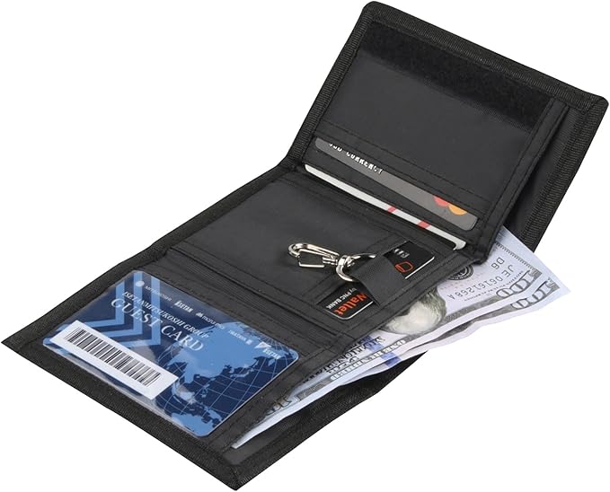 - Big Capacity: 1 x mesh ID window, 1 x outer zippered coin pocket, 3 x card slots for metro&credit card, 1 x large compartment for paper note, 1 x mini nylon mesh pocket, 1 x Keychain holder
