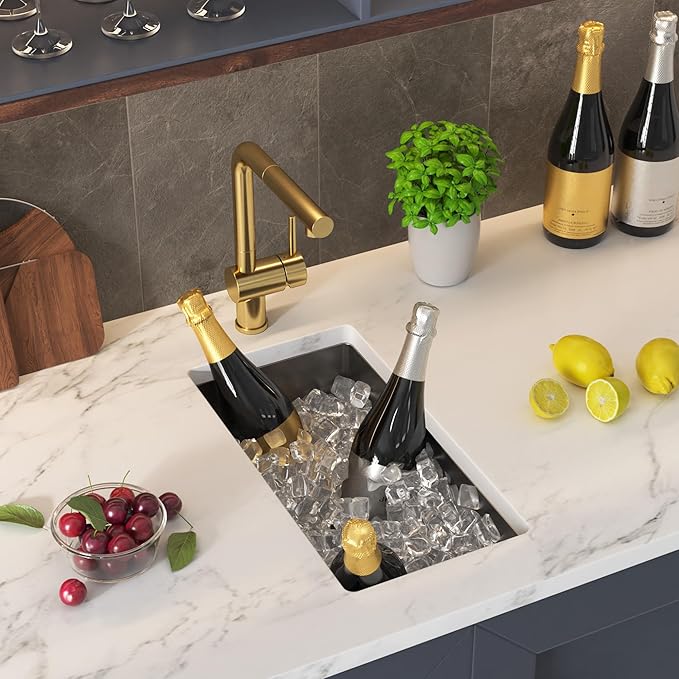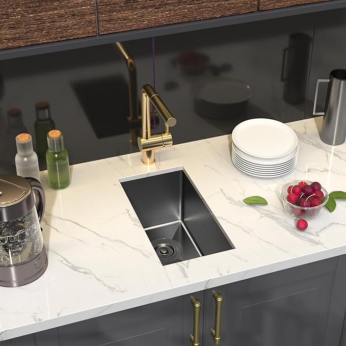 - [Fast & Complete Drainage]: This 10 x 18 inch black bar sink is designed with slopped bottom and X-shaped drain grooves that ensure draining water quickly and prevent water pooling. Standard 3.5" drain openings will fit any garbage disposal unit.