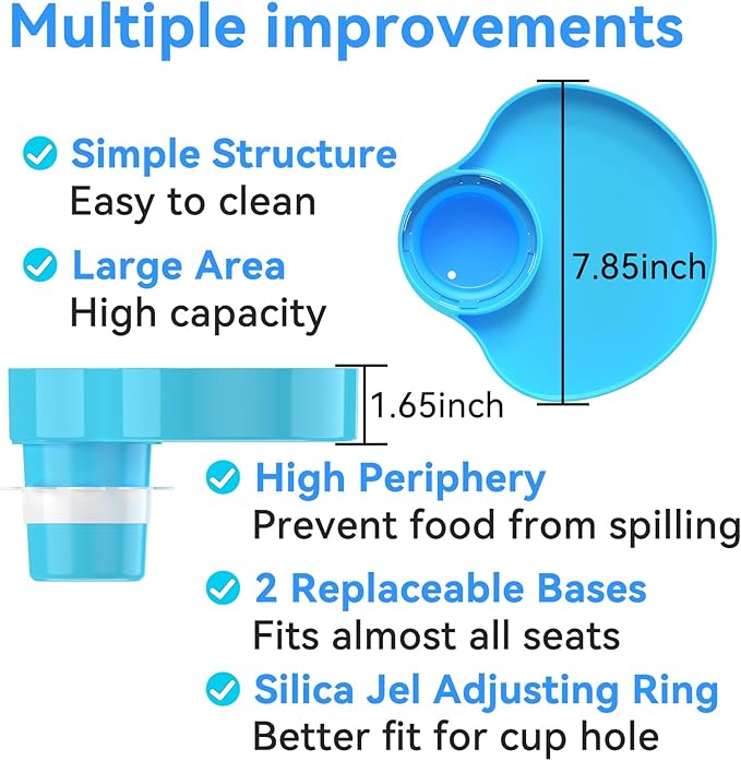 - [Big volume] The car seat food tray diameter up to 7.85 inches,big volume can store more food and snack.(Sky Blue, 2 PCS)