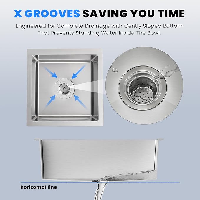 - 【Sink Dimension】Exterior Dimensions: 18"L x 18"W x 9"D, Interior Dimensions: 16"L x 16"W x 9"D. Standard 3.5" drain openings will fit any garbage disposal unit