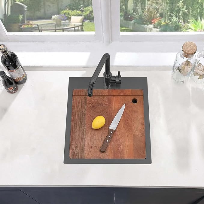 - 【Free Accessaries】 Comes with a solid wood cutting board, bottom rinse grid, drain strainer. Please feel free to purchase, and contact us if you have any question for this product.