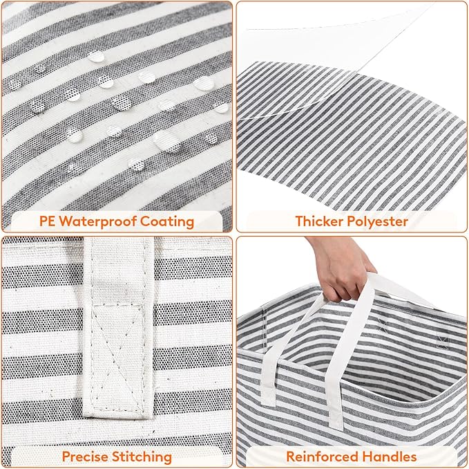 - Reinforced Handles: The 2 handles are reinforced with strong stitching and are long enough for carring with 1 or 2 hands. While full of items, our large hampers for laundry can also be easily carried up and down stairs or to a laundromat with ease.