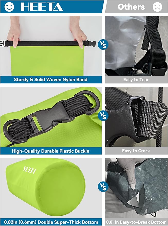 - Multifunctional - Equipped with adjustable shoulder straps for shoulder carrying and backpack, our dry bag is very convenient for different occasions like boating, rafting, kayaking, hiking, camping, fishing, mountaineering, etc. The lightweight dry bag won't weigh down your arms or shoulders