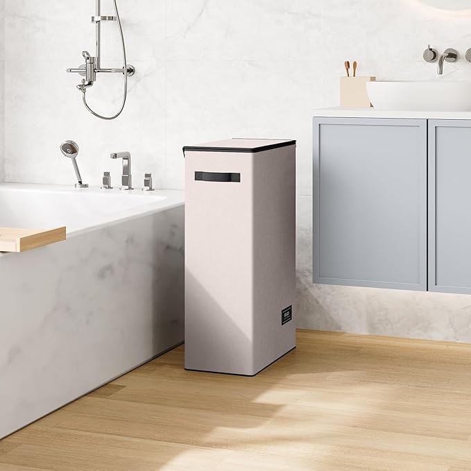 SOLEDI Slim Laundry Hamper with Lid, Narrow Laundry Basket with Removable Bags, Dirty Clothes Hamper with handle, Small Hamper perfect for Laundry room, Bathroom, Bedroom, Small spaces.Light taupe