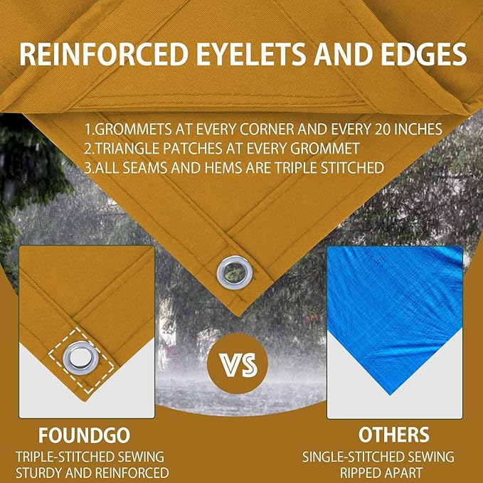 - 【Unmatched Material Upgradation】FoundGo canvas tarp, which is 22Mil thick and made of 14oz heavy-duty canvas, is a reliable asset. It offers a certain degree of water resistance, being sufficient to handle mild morning dew without getting soaked through. The fabric is breathable and enhanced by an organic fluorine silicone coating. This tarp is perfect for creating a comfortable and protected space and maintaining its integrity and appearance throughout multiple outings.