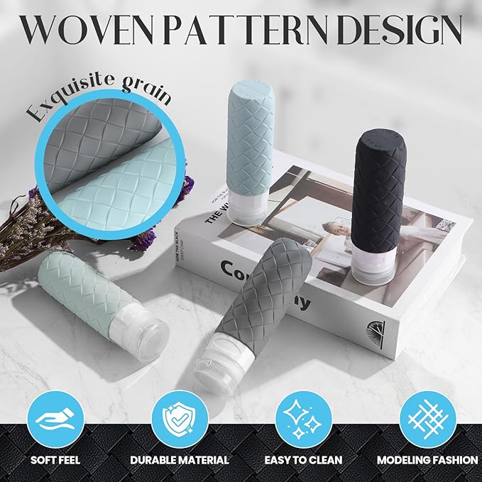- 【2025 NEWEST DESIGN】The latest Silevoler Travel Size Containers model adopts an elegant retro design, maximizing practicality and convenience. The newest design features a woven textured surface to ensure a firm grip even when the bottle is wet and slippery
