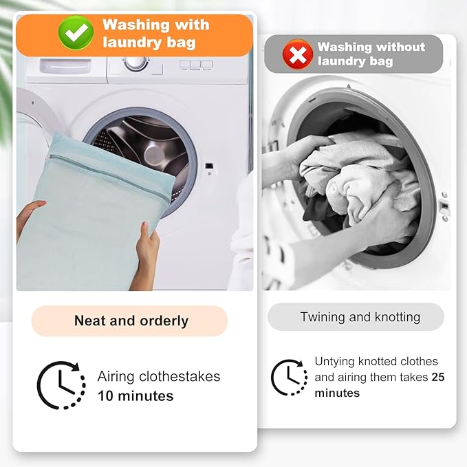 - 【Breathable Mesh, Special Zipper】Breathable mesh allows water to flow in and out smoothly, making it easy for the washer to deep clean clothes without wrinkling. The rust-resistant and durable zipper comes with a rubber band cover. You will say goodbye to zipper scratches on the washer and the opening of the laundry bag during the washing process.